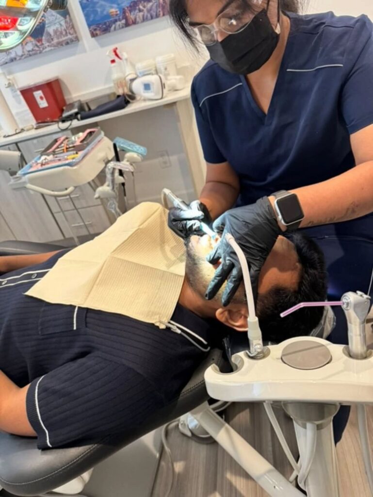 Dr. Raghu recommended a Laser Flap Surgery, a modern, stitch-free procedure that would clean and sterilize the gums deeply without pain, bleeding, or downtime.